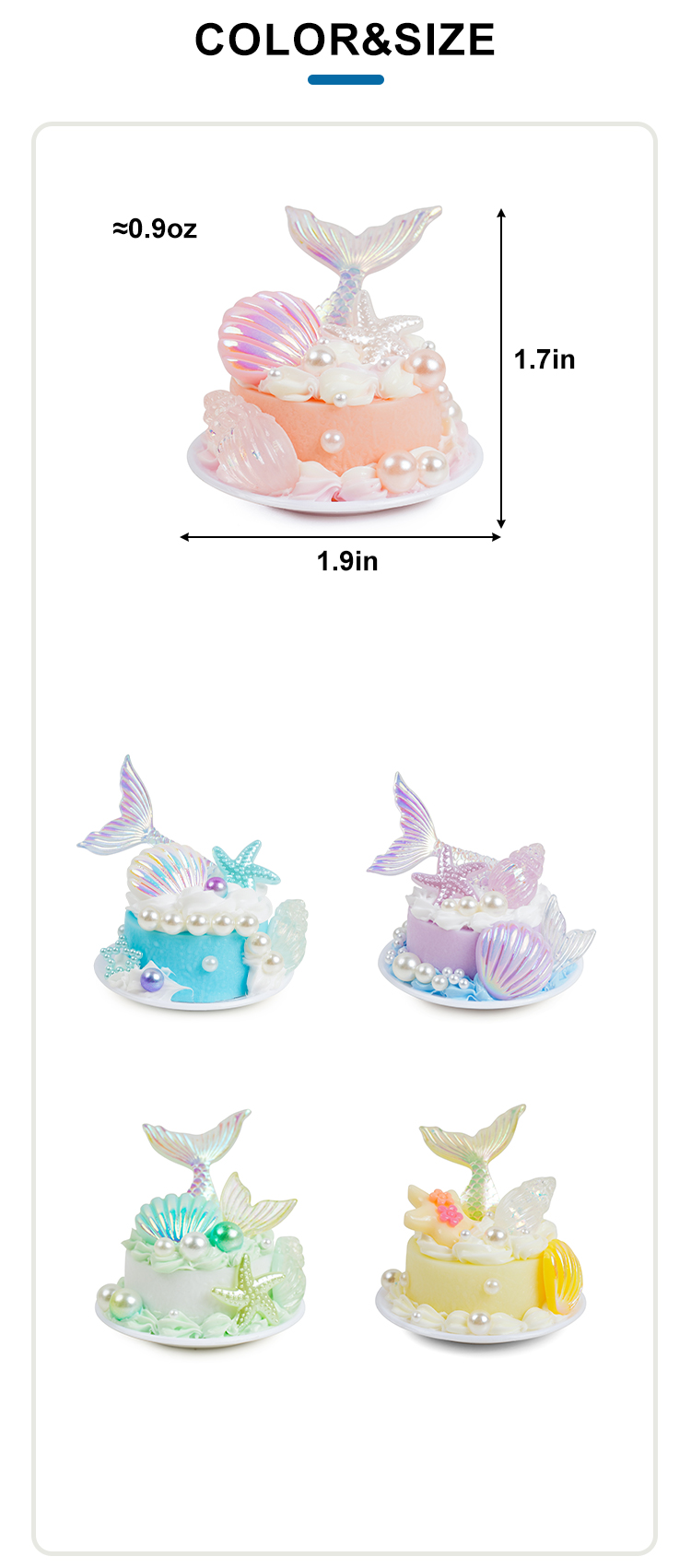 Original Design Colorful Miniature Mermaid Birthday Cake with Pearls, Shells & Fruit (Customizable)